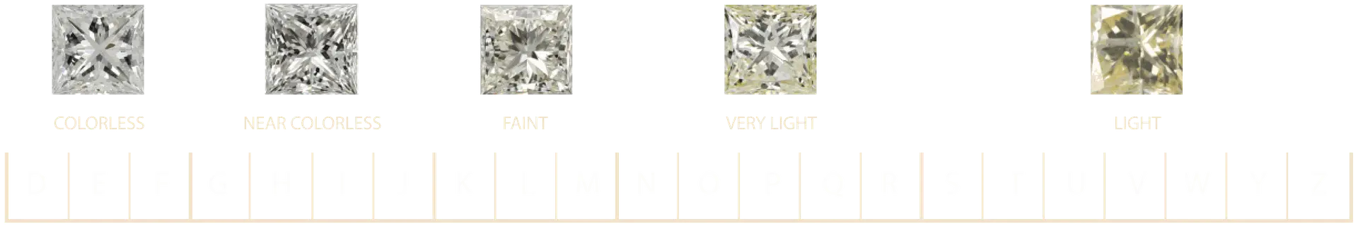 Although many people think of gem quality diamonds are colorless, truly colorless diamonds are actually very rare. Most diamonds used in jewelry are nearly colorless with tints of yellow or browns. Color grades are determined by comparing each diamond to a master set. Each letter grade represents a range of color and is a measure of how noticeable a color is.
