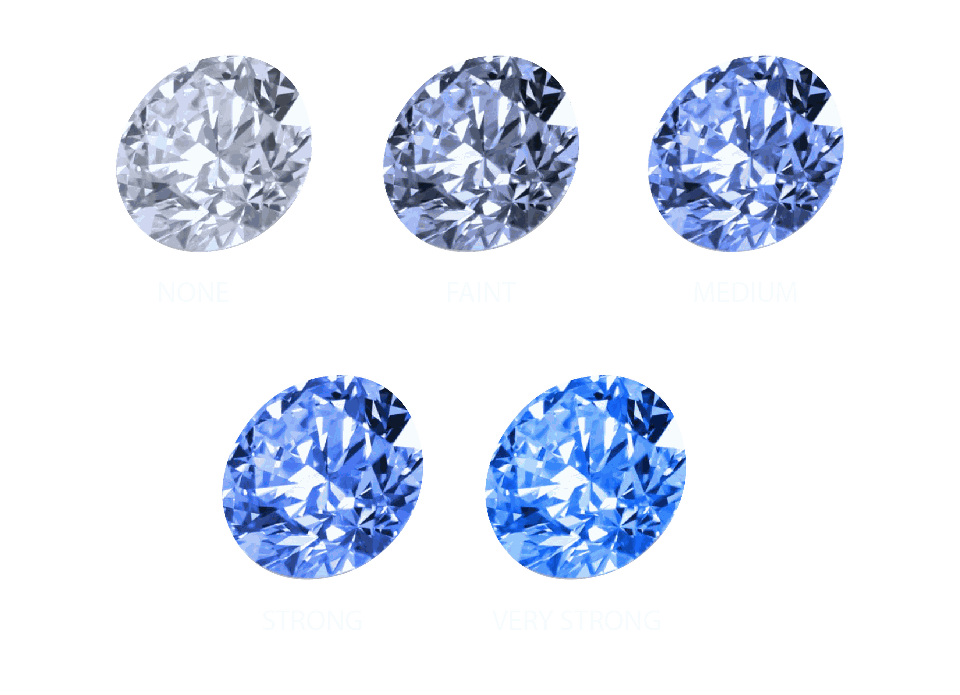 11: Fluorescence – How the diamond glows under UV light (None to Strong).